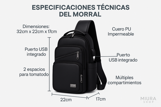 Morral Crossbody con Puerto USB - Cuero PU Impermeable